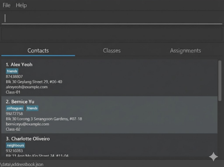 Classroom Plus Plus (CPP) is a desktop application for managing your contact details, classes and assignments. While it has a GUI, most of the user interactions happen using a CLI (Command Line Interface).